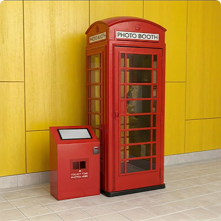 The phone booth adds a unique feature to your venue - a replica British phone booth with an overhead camera for flattering shots.